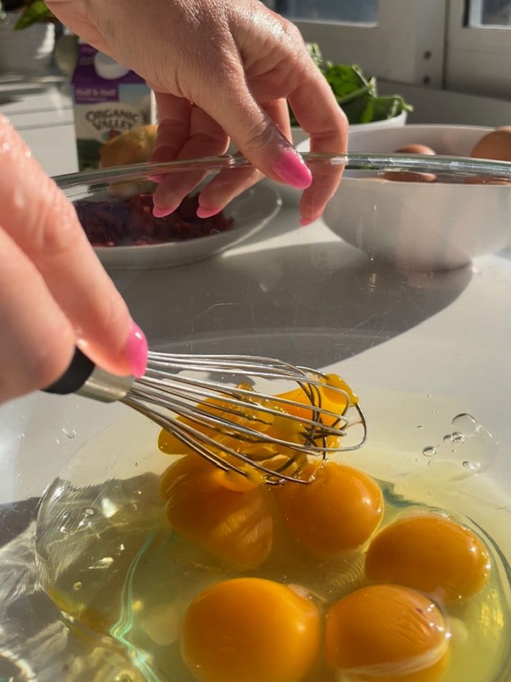 This recipe has so many of my favorite flavors in one dish! It is perfect to throw together and pop in the oven for breakfast or brunch with friends (and mimosas!). The real stars of this dish are the sun-dried tomatoes, which give it that umami flavor, and the sweetness from the caramelized onion. Add in Brie cheese and spinach and insert drooling emoji here.