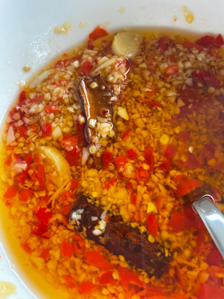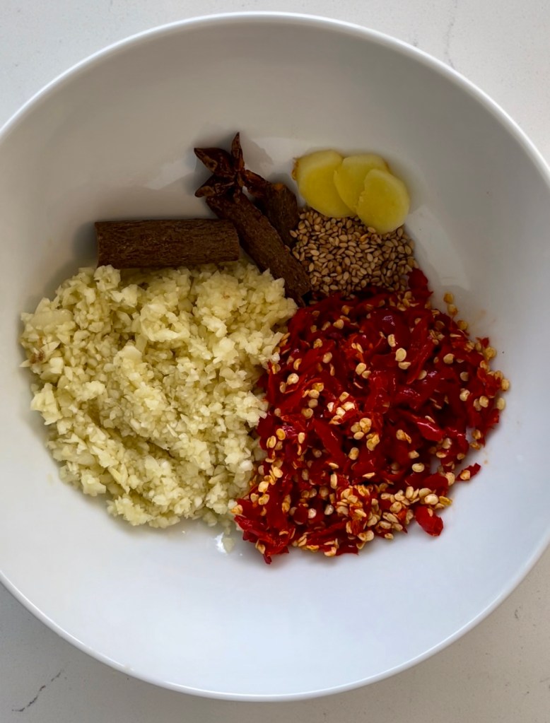 You could make this with just 3 ingredients: oil, garlic and chilis, but adding a few more will increase the depth of flavor and texture. I recommend sesame seeds to add nuttiness & crunch. Aromatic star anise and cinnamon add a very mild sweet and woody flavor. Ginger adds a slightly peppery and sweet flavor, with a pungent and spicy aroma. All of these combined balance out and add complexity to the heat of the chili peppers.