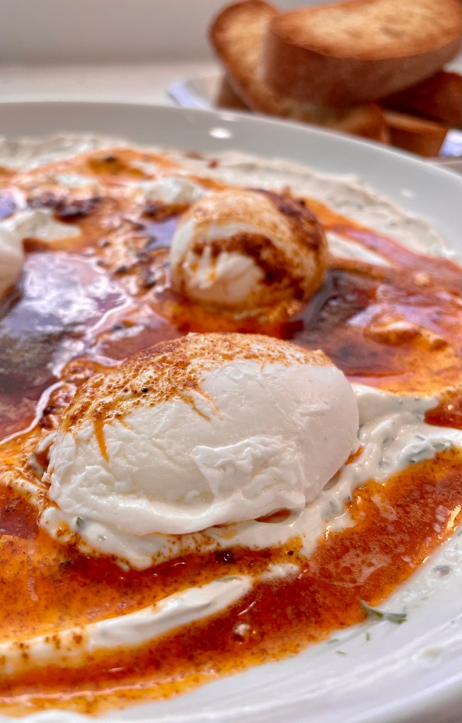 Also known as Çilbir, this popular Turkish dish consists of poached eggs served over a garlic yogurt base and drizzled with aromatic melted paprika butter and topped traditionally with Aleppo pepper. Serve this with crusty bread or a traditional pita triangle for a hearty and delicious breakfast. This recipe feeds 2 hungry people!