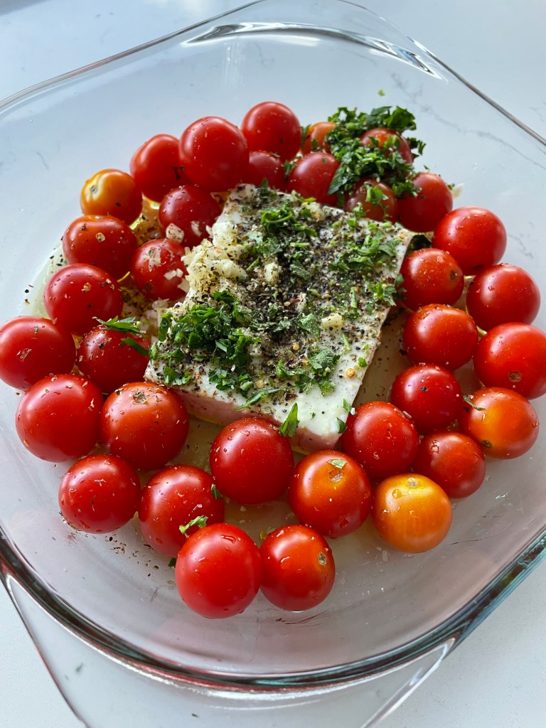My now viral recipe with over 2.7 million views on instagram is a must-try! It is made by simply roasting a block of feta cheese, cherry tomatoes, and a few simple seasonings in the oven. The end result is a salty, cheesy, garlic-y sauce that you can serve as a dip with crusty bread or just add pasta for an easy weeknight meal. Watch my viral video here.