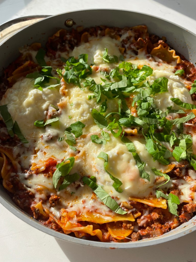 The ultimate Italian comfort food, but so much easier! This 30 minute one-pan lasagna recipe will save you a full hour of cook time vs a traditional oven-baked lasagna. It is so easy to throw together on your stove top, you don’t even need to turn on the oven. This delicious one-pan dinner is perfect for those busy weeknights when you need something quick. This recipe tastes even better than the original and you can say goodbye to soggy noodles, these come out perfect every time – give it a try!