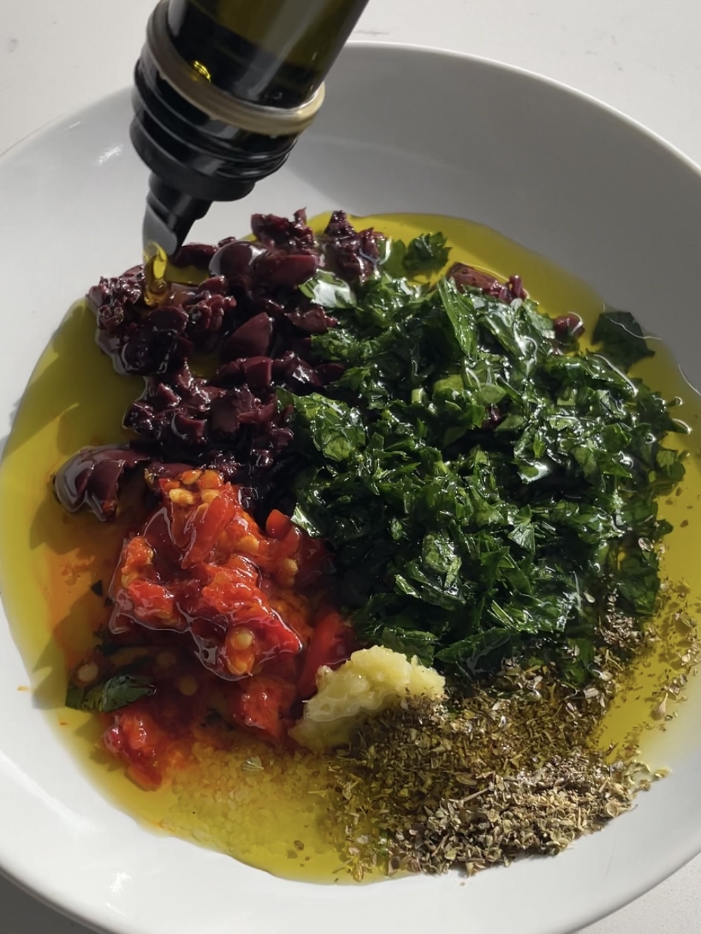 There’s something undeniably satisfying about tearing into a warm, crusty loaf of bread and dipping it into a tasty oil blend. Italian bread dipping oil is a classic app that’s simple to make but packs a flavor punch. My recipe combines extra virgin olive oil, balsamic vinegar, and a handful of other ingredients to create a delicious dipping sauce that’s perfect for entertaining or simply enjoying with your favorite bread. The addition of Kalamata olives, fresh parsley, and Calabrian chili peppers add a depth of flavor (and a little kick) that will have you coming back for more. So let’s get dipping!