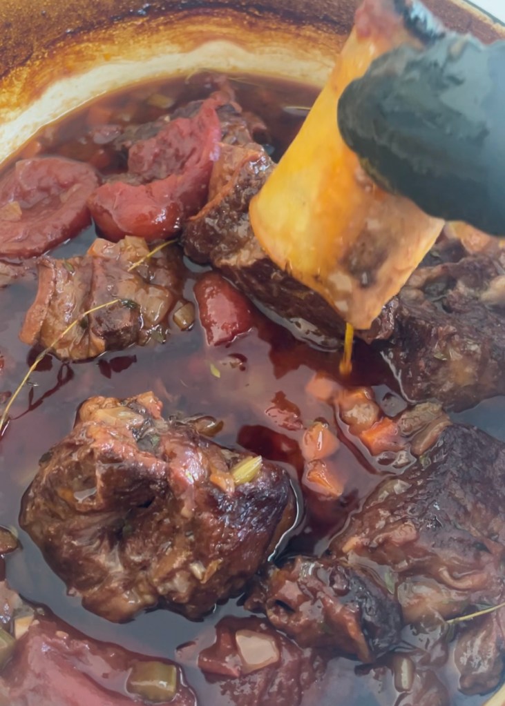 Step 6: Cover the Dutch oven with a lid and cook at 400°F for 3 hours, or until the meat easily separates from the bone.